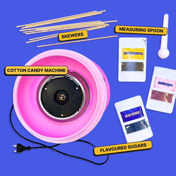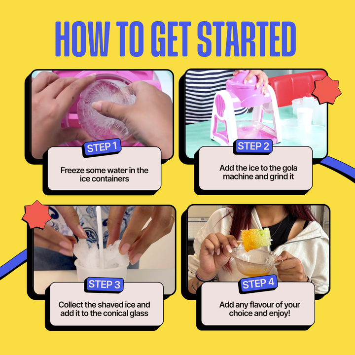 Relive your childhood with DIY Ice Golas at home & make UNLIMITED fluffy cotton candies at home! This nostalgic combo kit lets you whip up endless sweet treats right from your kitchen. Choose from 3 delightful cotton candy flavours and 10 exciting gola syrups. Both kits are super easy to assemble and quick to use — no prior experience needed. Perfect for hosting unforgettable parties (even boozy gola nights!), this combo promises fun for all ages. Bring back those carefree childhood vibes with every colourful swirl and icy bite!